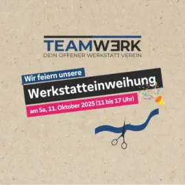 Endlich ist es soweit! 🎉 Nach über einem Jahr intensiver Umbau- und Aufbauphase öffnet unsere TEAMWERK Werkstatt ihre Türen – und wir möchten diesen besonderen Moment mit dir feiern! 📅 Samstag, 11. Oktober... Weiterlesen